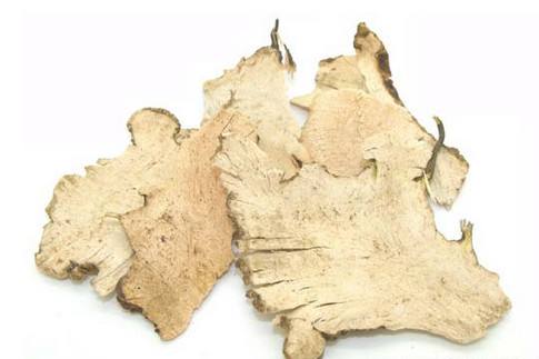 本品為不規(guī)則的薄片,邊緣不整齊,大小不一,厚約0.5mm。有的有棕黑色或灰棕色的外皮。切面黃白色或淡灰棕色,維管束呈小點(diǎn)狀散在。質(zhì)松,略有彈性,易折斷,新斷面近外皮處顯淡黃色。氣微,味辛、微苦。