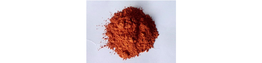 為朱紅色極細粉末,體輕,用手指撮之無粒狀物,以磁鐵吸之,無鐵末。氣微,味淡。